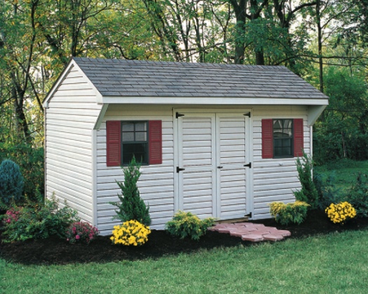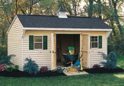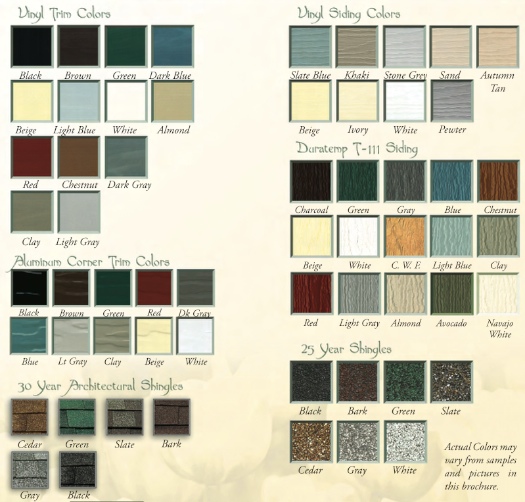 Our sheds feature quality construction & materials and are available in a variety of styles, colors, and with a huge selection of options. Choose between our durable vinyl siding or duratemp maintenance free T-111 painted siding!