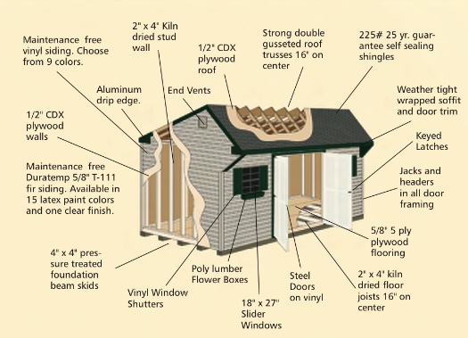 and open rafters. Our Quaker shed has a 7' 6" front wall and 6' 6"